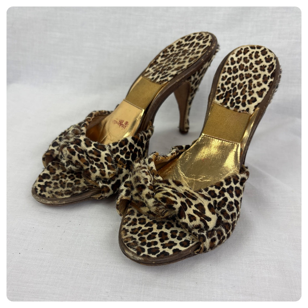 🐆 Vintage 1950s Leopard Springolators - Frederick's of Hollywood - Pin-Up Bombshell Mules - Size Approx. 6.5