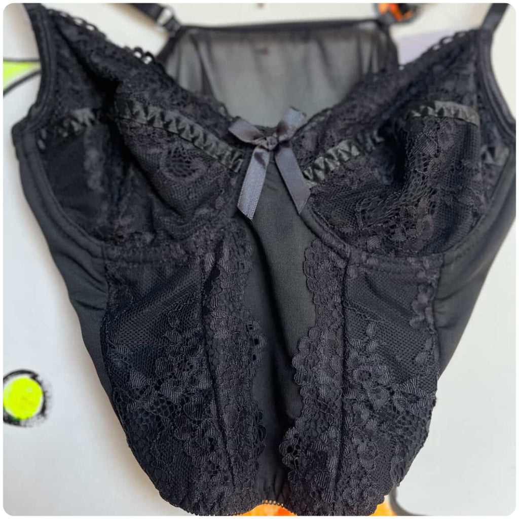 🖤 Vintage 90s Black Lace Cropped Cami - Lingerie Babydoll Bustier Top - Grunge Goth - S