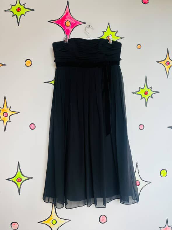 Ann Taylor 90s Y2K Black Silk Sheer Babydoll Slip Dress – Fairy Grunge Flow – 2