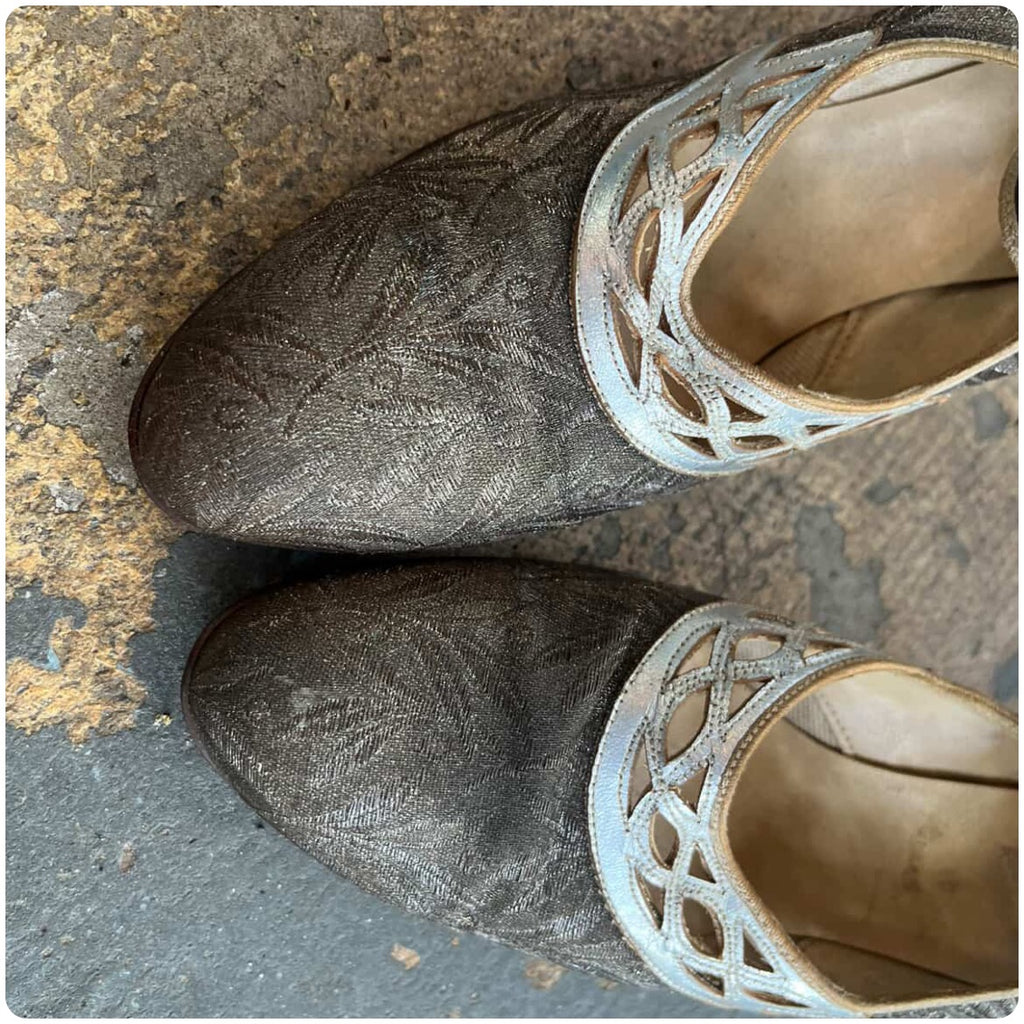 ✨ Antique 1920s Art Deco Silver Mary Jane Flapper Pumps - Cutout Detail - Size 6/6.5 ✨