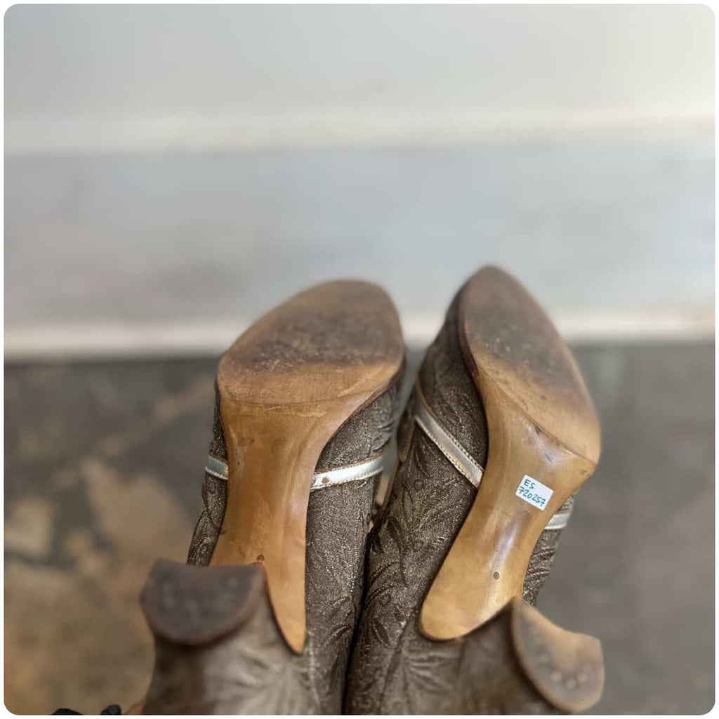Good antique condition-sturdy and still wearable. The interior is in excellent shape, and the outer sole and heel tap have plenty of life left. See photos for close-up details. A rare and collectible find for vintage shoe lovers, Great Gatsby enthusiasts, or period costume designers.
