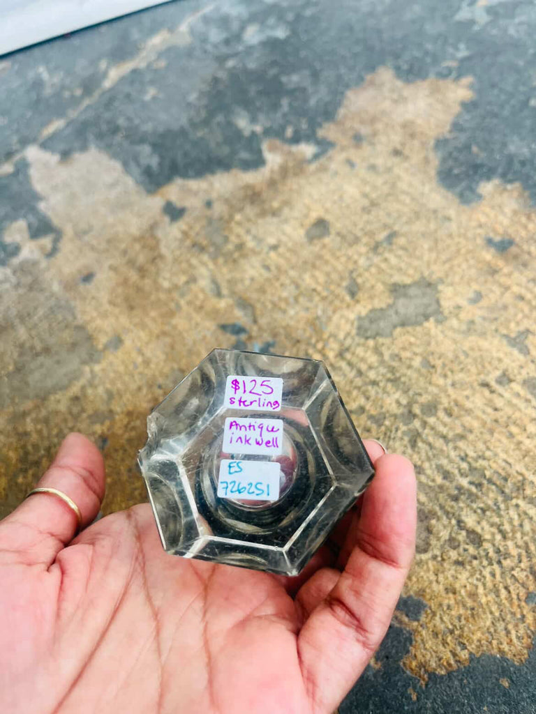 #AntiqueInkwell #SterlingSilver #VintageDeskDecor #GlassInkwell #CollectibleInkwell #AntiqueWriting #VintageOffice #OldWorldCharm #CurioCabinet #EphemeraCollector #InkwellCollector #AntiqueSilver #WritingAntiques