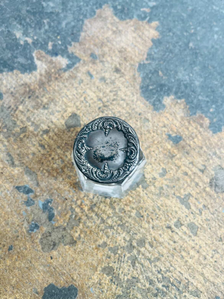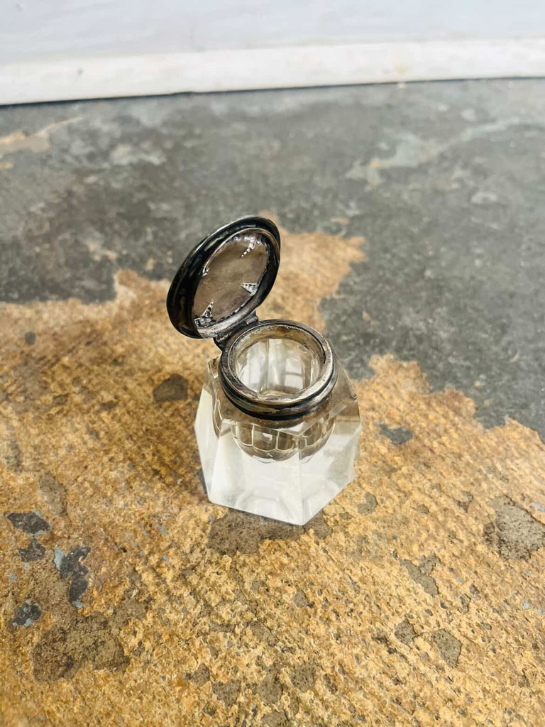 Antique Glass & Sterling Silver Inkwell – Elegant Desk Decor