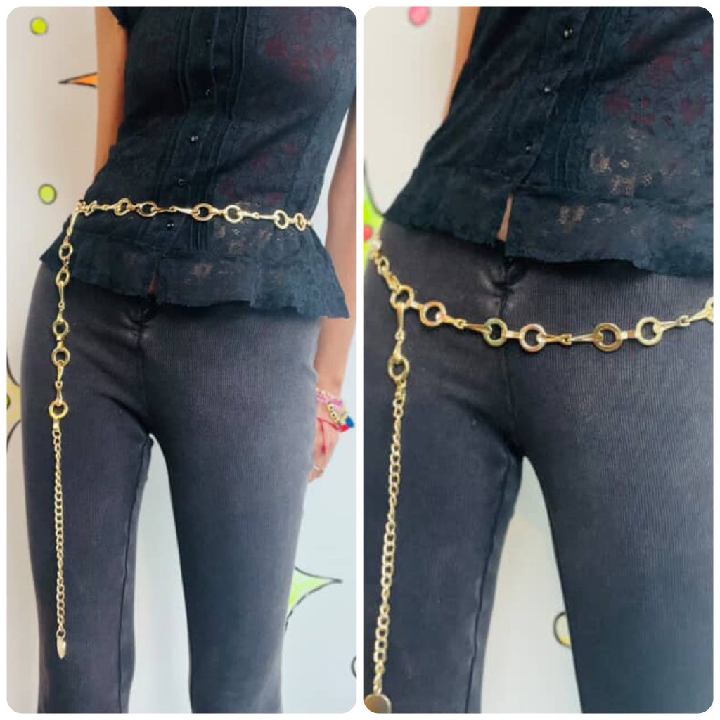 Add instant retro glam and edge with this vintage-inspired gold chain hoop belt. With an open-link design and easy-to-hook clasp, it's fully adjustable and works for nearly all sizes - whether worn high at the waist or low on the hips. This piece brings serious 60s/70s boho energy, with a touch of Y2K grunge flair.