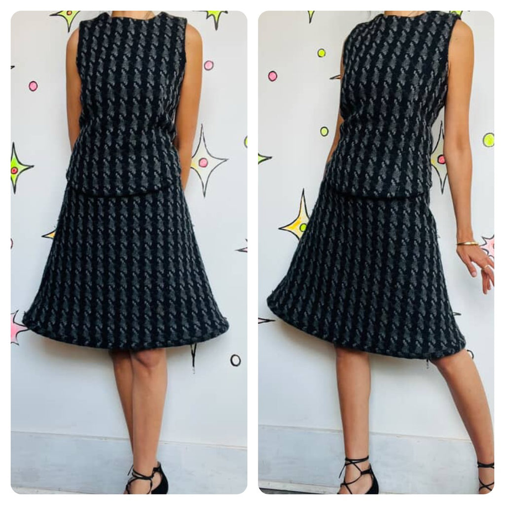 Vintage Japanese Brand The Gabriel Chelsea Wool Herringbone 2-Piece Dress Set - Boho Dark Academia Cottagecore - Rare