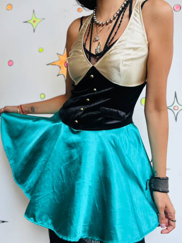 Pair with colorful tights, a mini top hat, or bold accessories for a statement-making look.