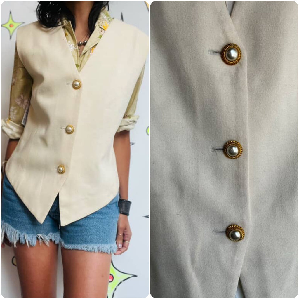 Off White Oversized Vest with Gold Buttons - Rococo Victorian Revival - Size M
