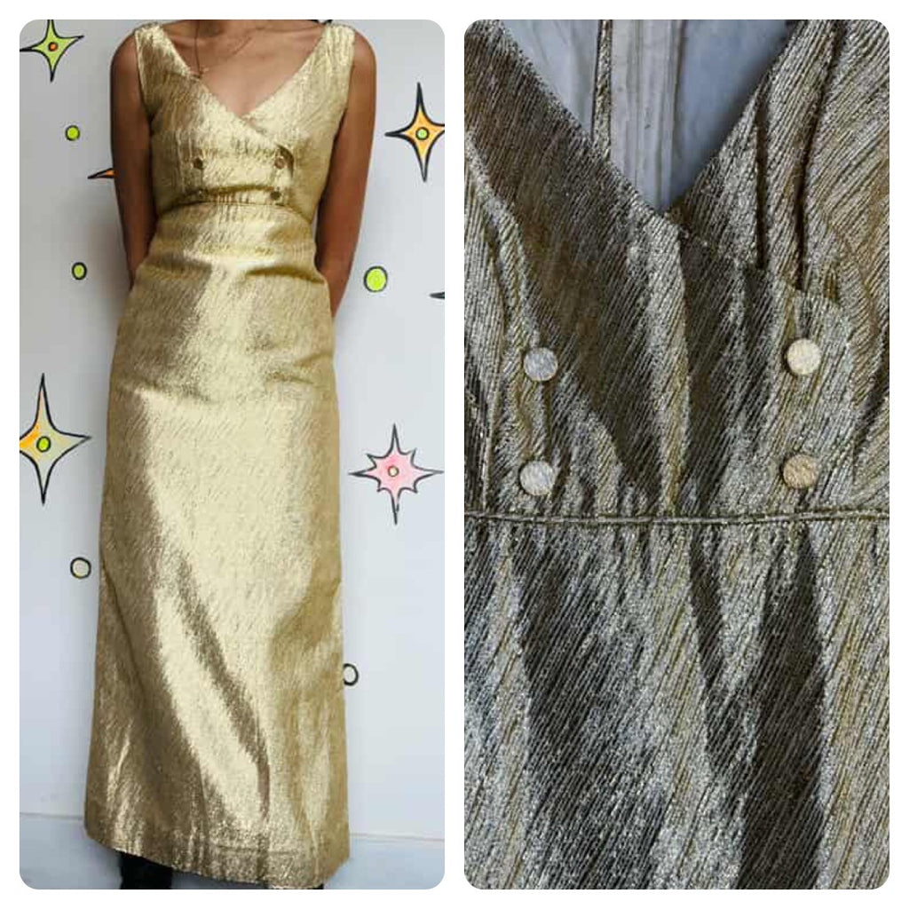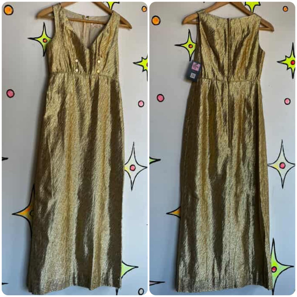 Stunning Old Hollywood 60s Gold Metallic Maxi Dress – XS – True Vintage