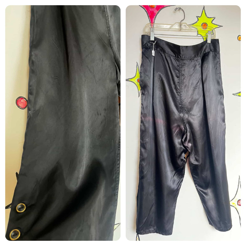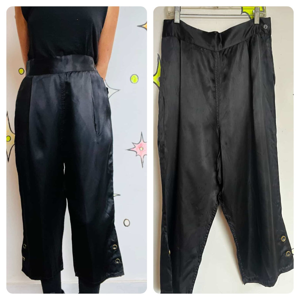 🖤 Vintage 1930s Black Silk High-Waisted Loungewear Trousers ' Capri Pants ' 29" Waist