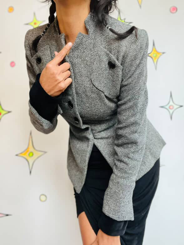 Whether styled with a pencil skirt for a 1940s look or paired with modern denim for a chic twist, this jacket is a versatile piece of history.
