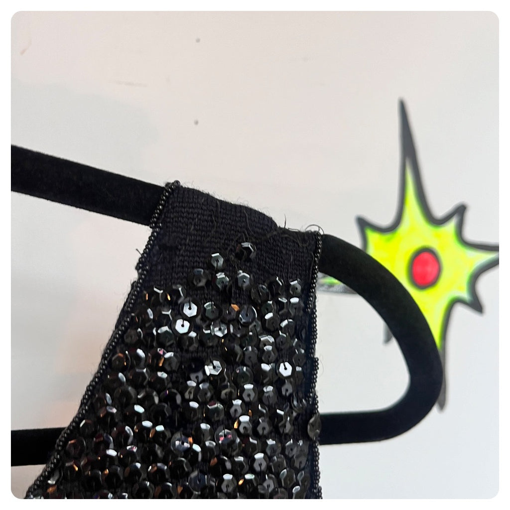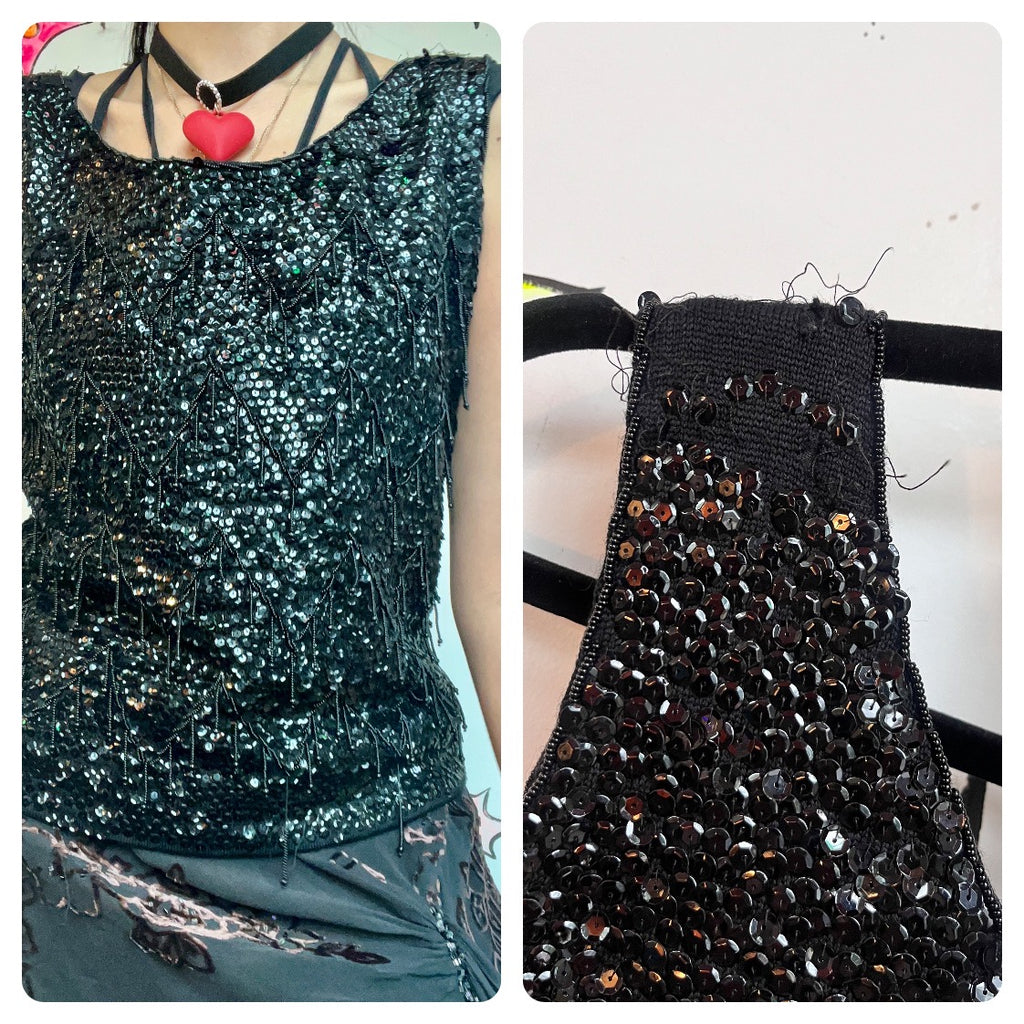 Vintage 1950s/60s Heavily Beaded & Sequin Flapper Blouse - Black Wool Sleeveless Top - Size S