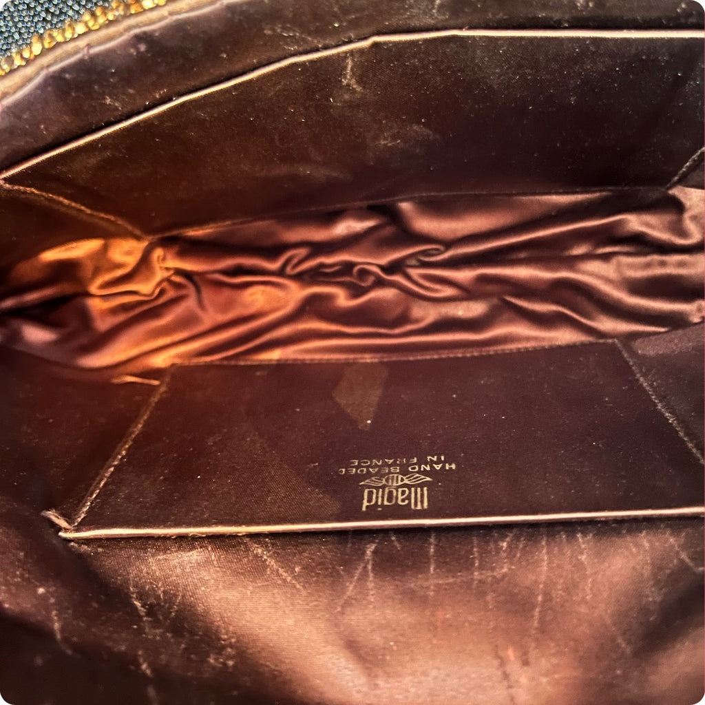 Vintage 1950s 60s ' Metallic Bronze Gold Brown Beaded Purse Bag Handbag Clutch