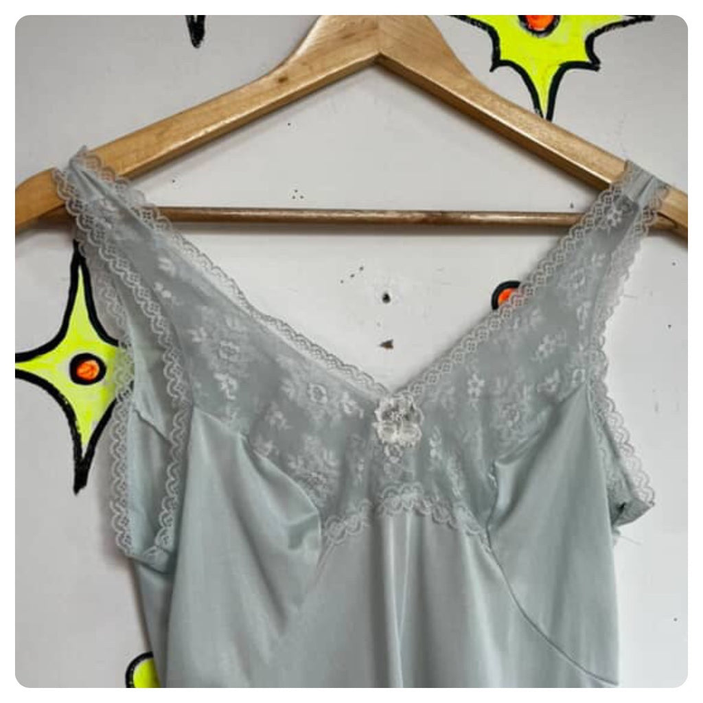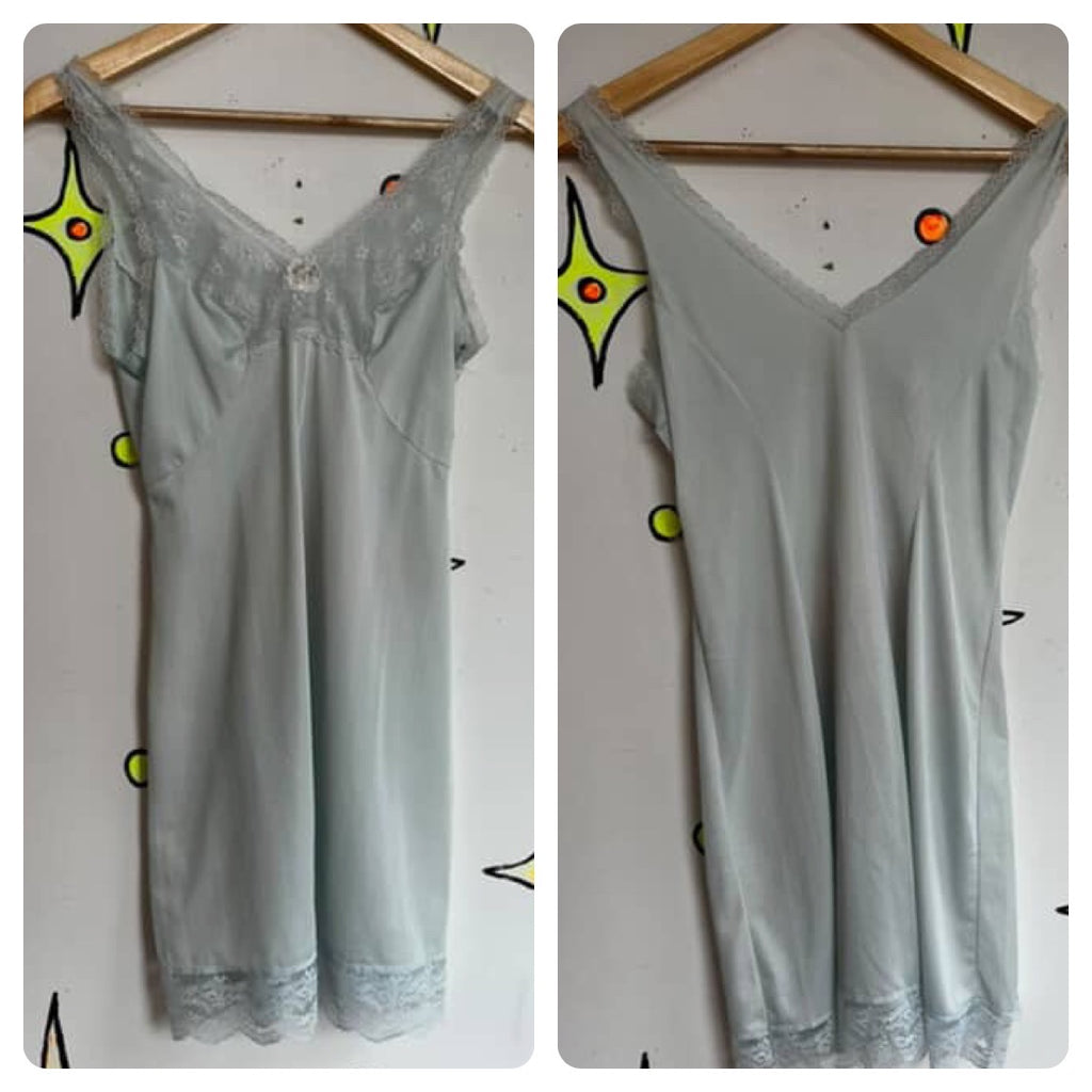 Vintage 1950s 60s ' Pale Pastel Blue Lace Fairy Babydoll Lingerie Slip ' Small