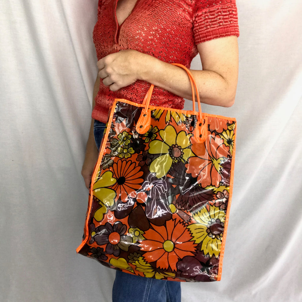 Vintage 60s 70s | Mod Boho Hippie Clear Flower Power Vinyl Plastic Tote Bag
