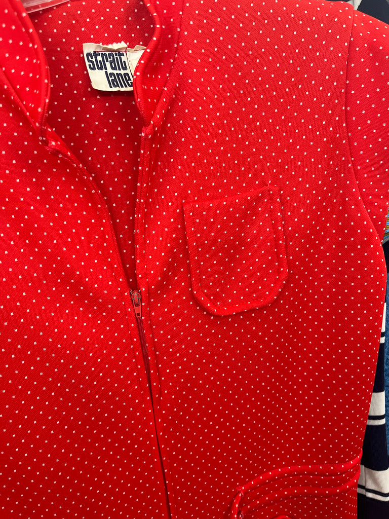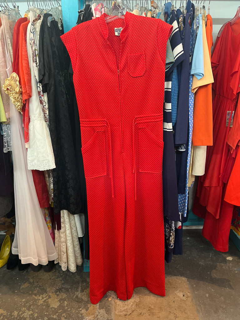 Vintage 1970s ' Red Groovy Mod Disco Wide Leg Bellbottoms Jumpsuit ' L