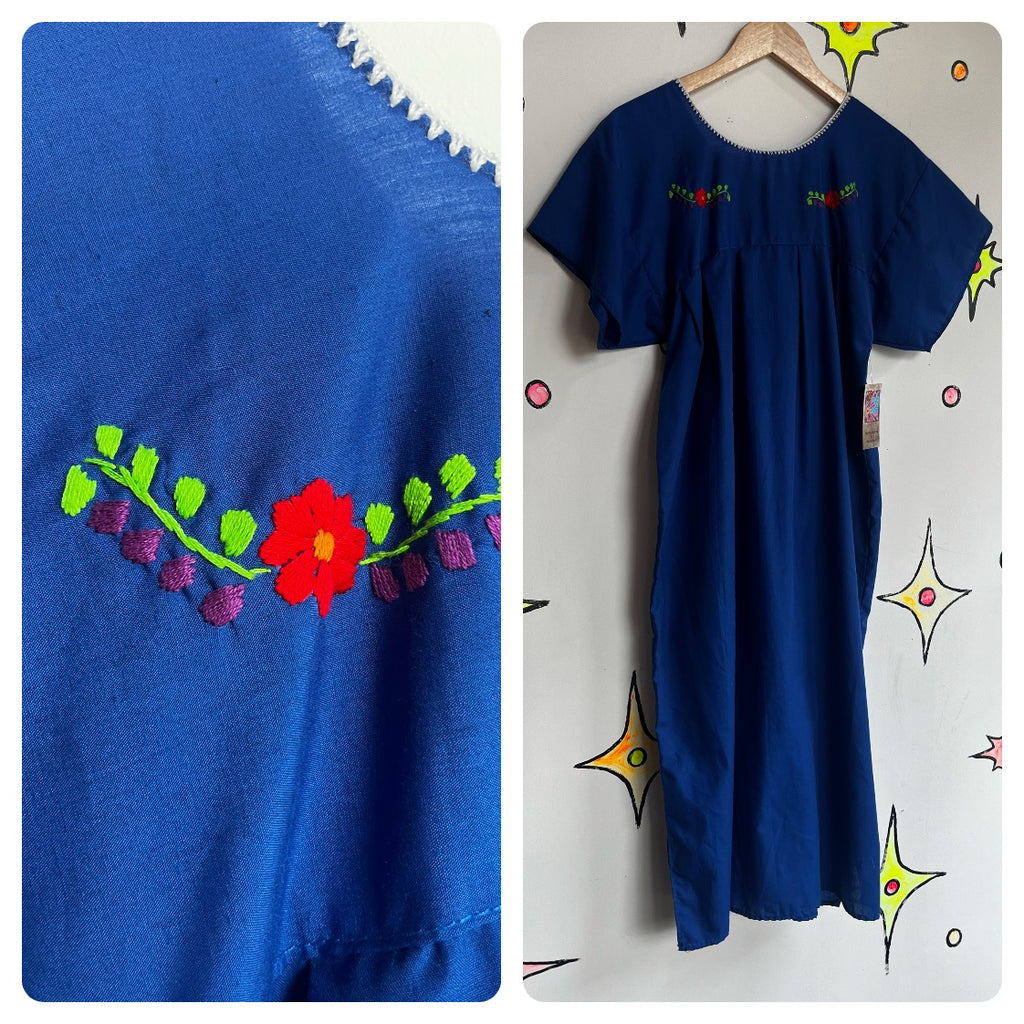 Vintage 60s 70s | Blue Boho Oaxacan Mexican Hand Embroidered Festival Dress