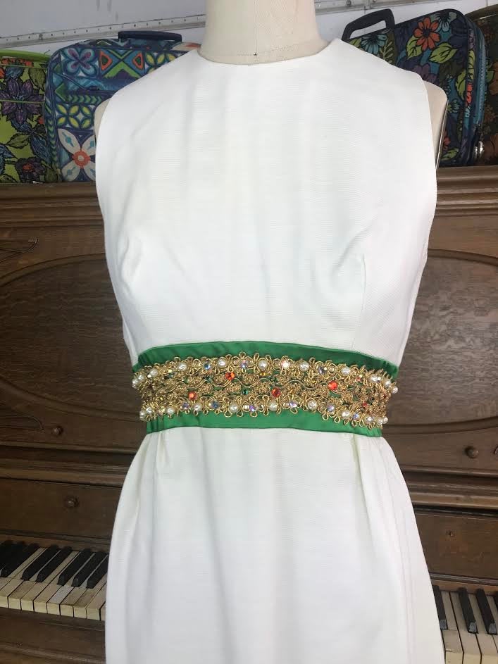 Vintage 60s 70s Mod Mid Century Maxi Prom Party Wedding Cocktail Beaded Cut Out Back Dress XS