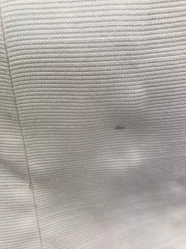 There are a couple small, light spots that may be able to be cleaned out. Not noticeable unless examined closely.