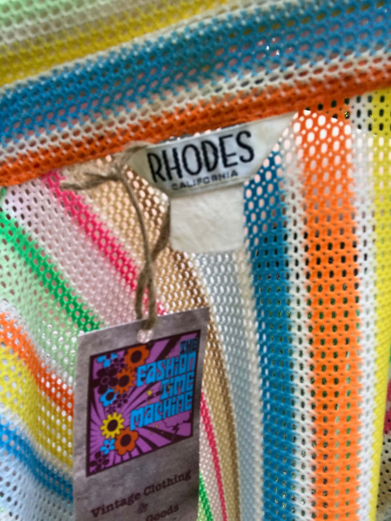 Vintage 60s 70s | Rainbow Stripe Novelty Dagger Collar Mod Disco Shirt Top