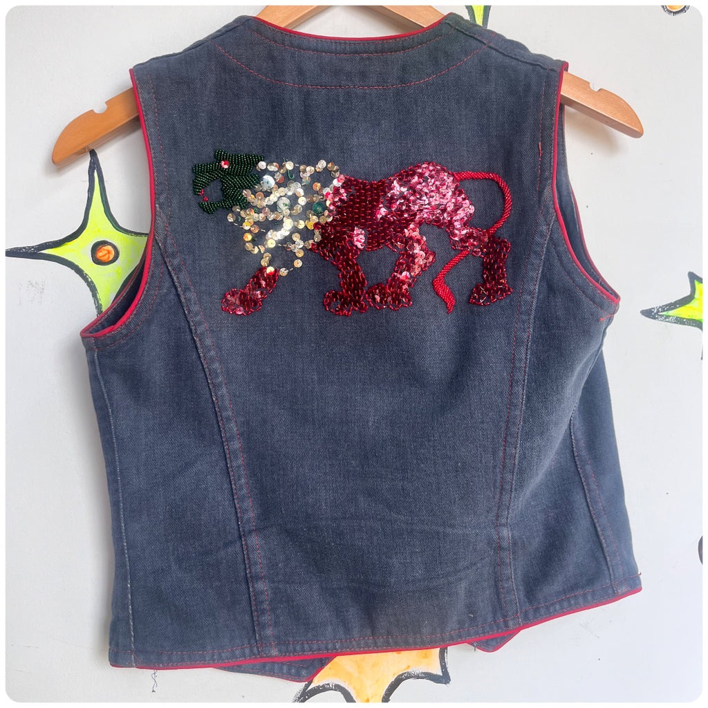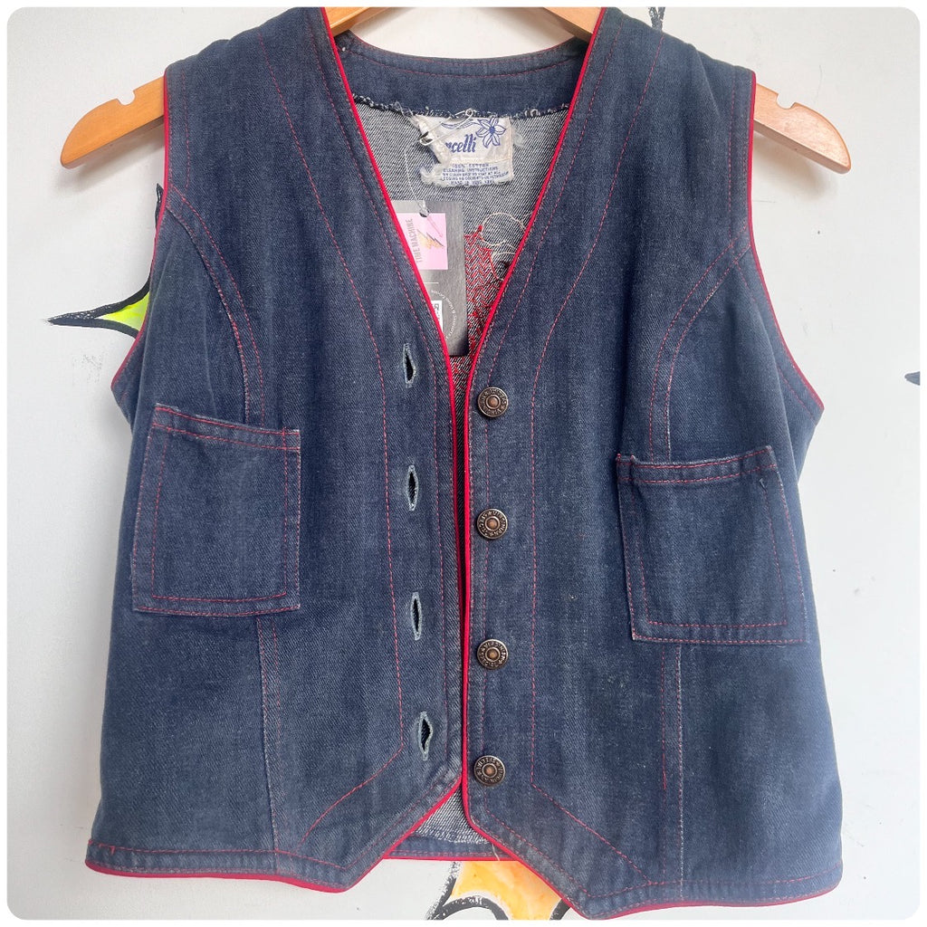 Vintage 60s 70s ' Vintage Cropped Western Boho Fittled Beaded Denim Vest ' S