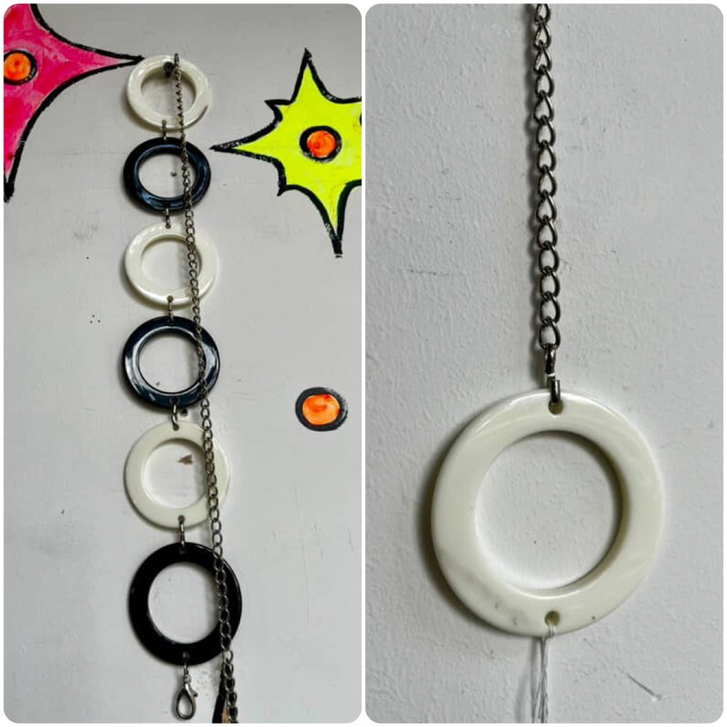 Vintage 60s | Black & White Op Art Groovy MOD Go Go Metal Circle Hoop Belt