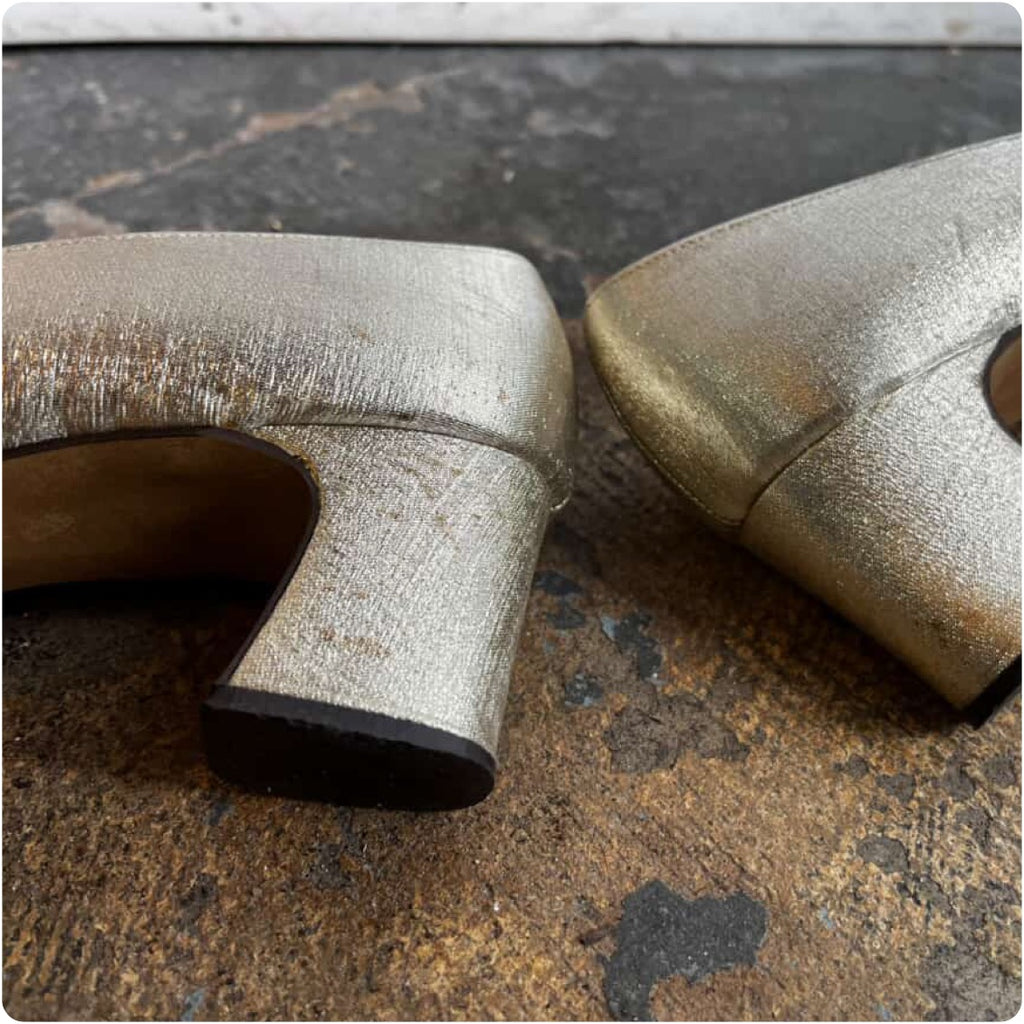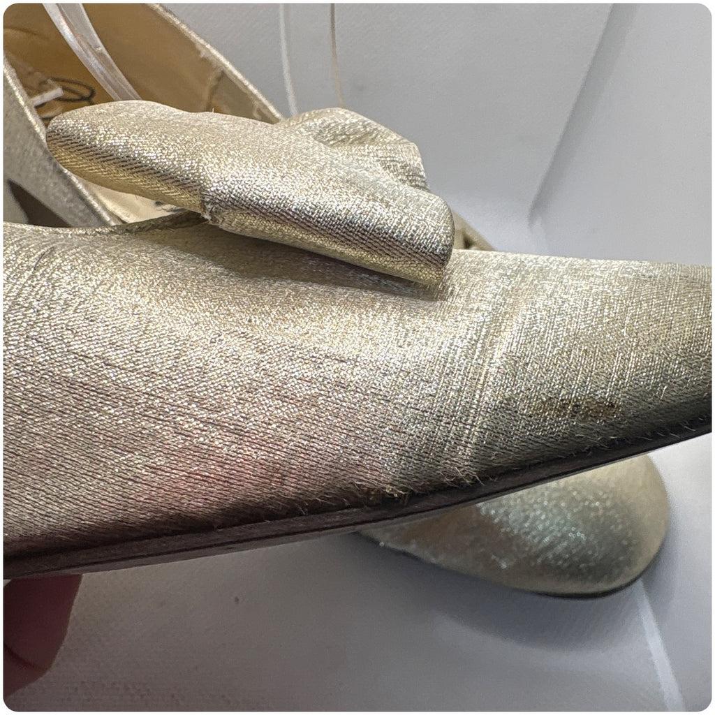 ✨ Size 6 - 1960s Sparkling Gold Metallic Brocade Heels - Square Bow Tips - Low Heel Pumps ✨