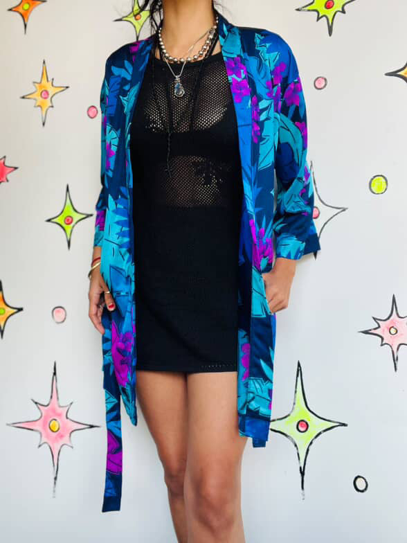 Vintage 70s/80s Teal & Magenta Tiki Hawaiian Night Robe | Retro PJs – M