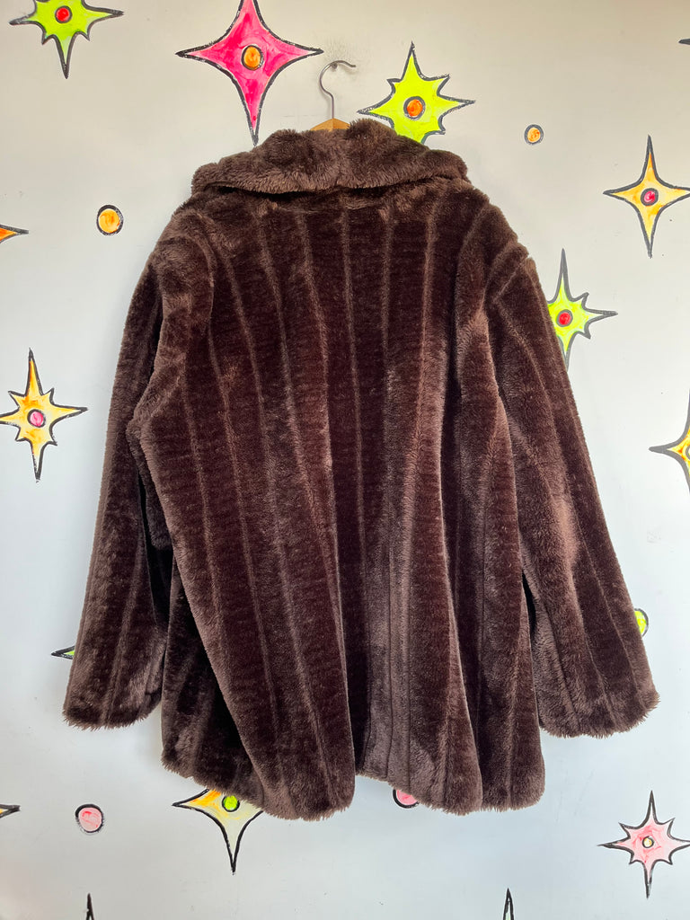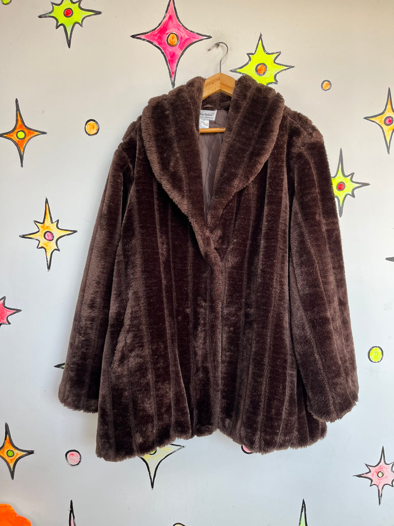 Vintage 70s 80s Y2K Chocolate Brown Faux Fur Vegan Glam Pinup Boho Grunge Coat 2X