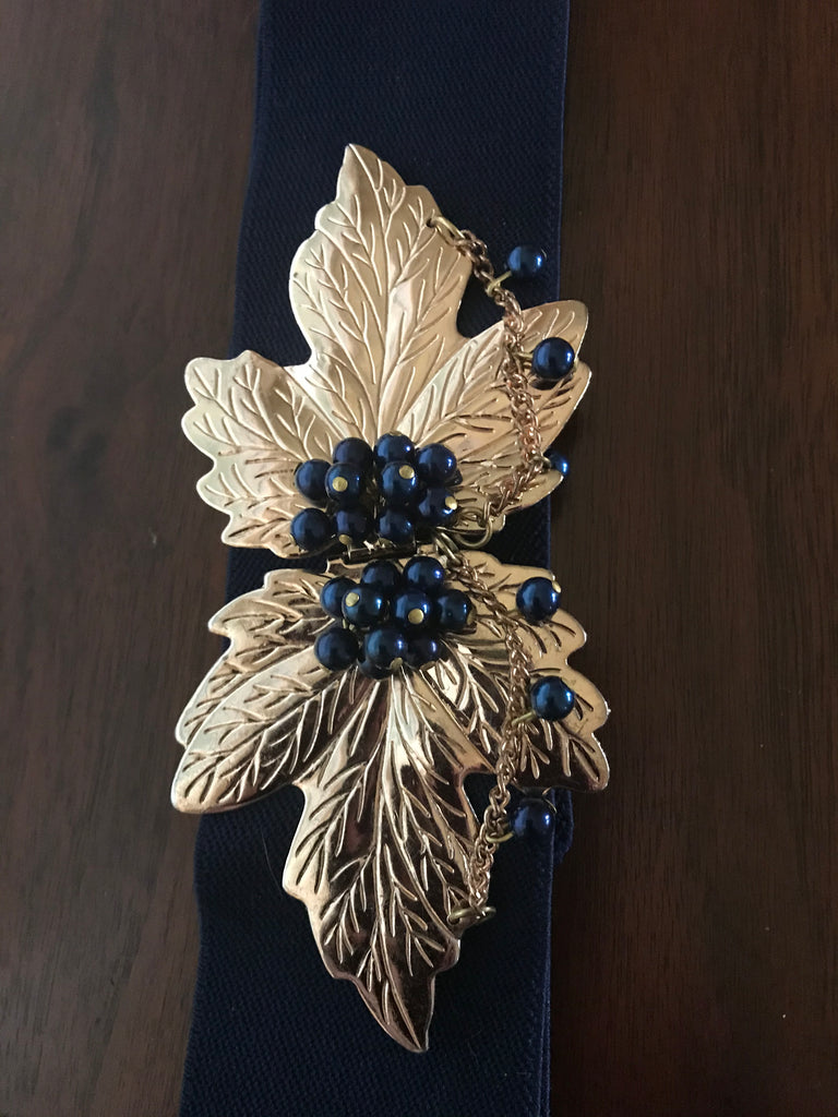Vintage 70s Elastic Belt with Gold Leave Clasp