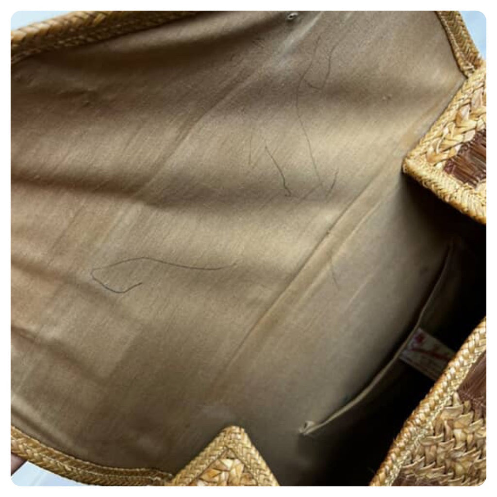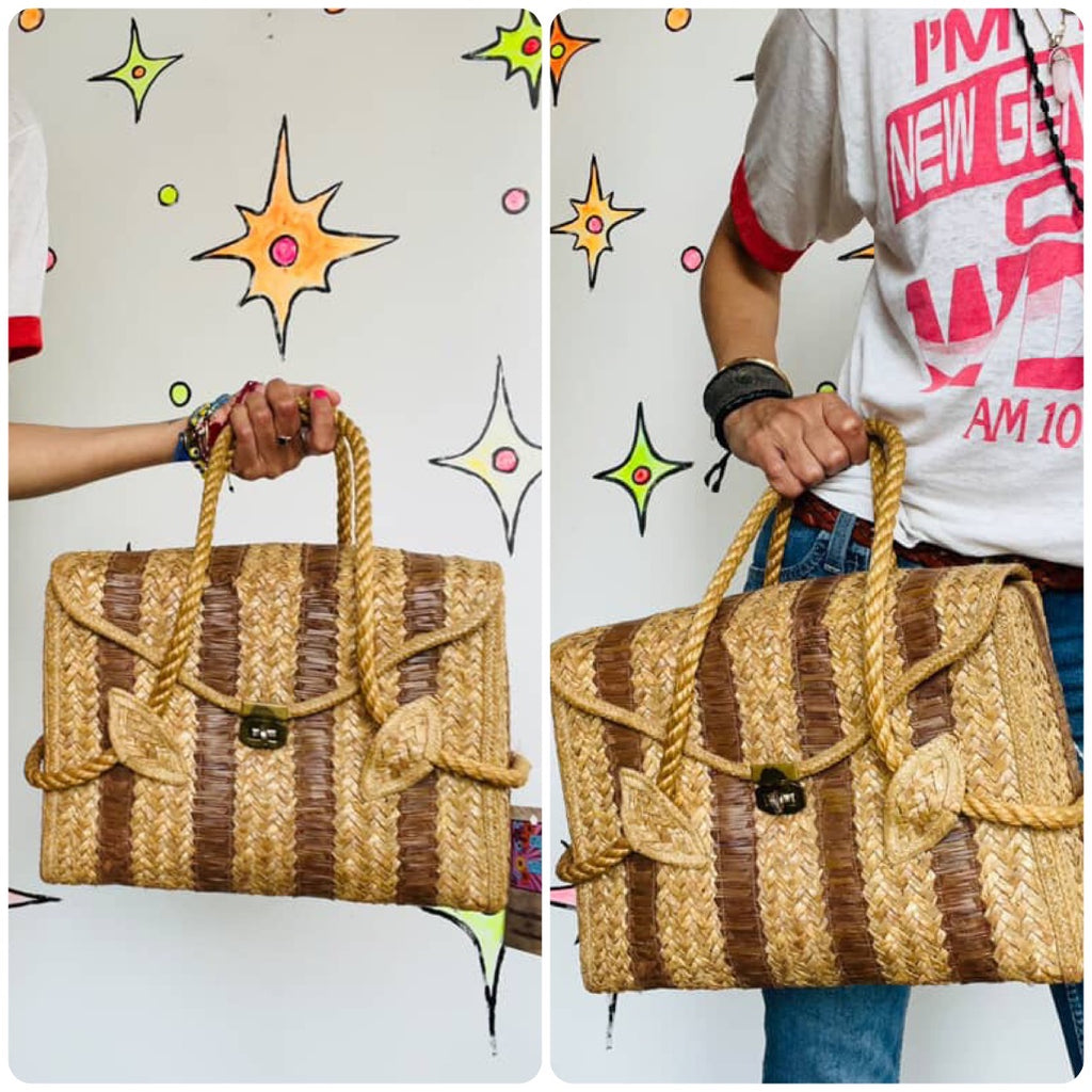 Vintage 70s ' Rattan Basket Purse Woven Wicker Tote Boho Hand Bag