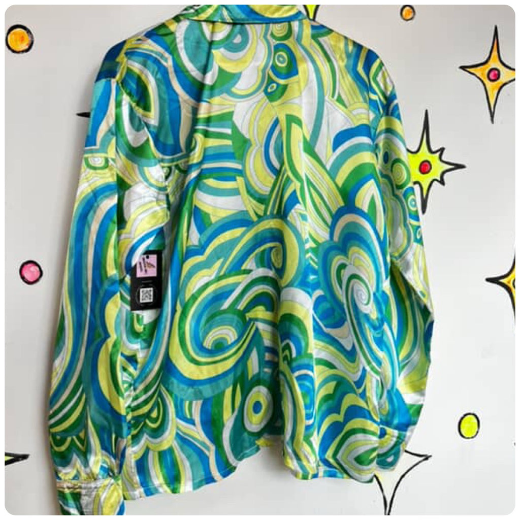 πͺ© Get your groove on in this vintage psychedelic stunner! This 70s-inspired retro disco shirt features a bold, trippy op art print in vibrant colors, plus an exaggerated dagger collar for full Saturday Night Fever vibes. Made from classic polyester for that signature slinky sheen and stretch, it's perfect for a dance floor moment, themed party, or turning heads on the daily.