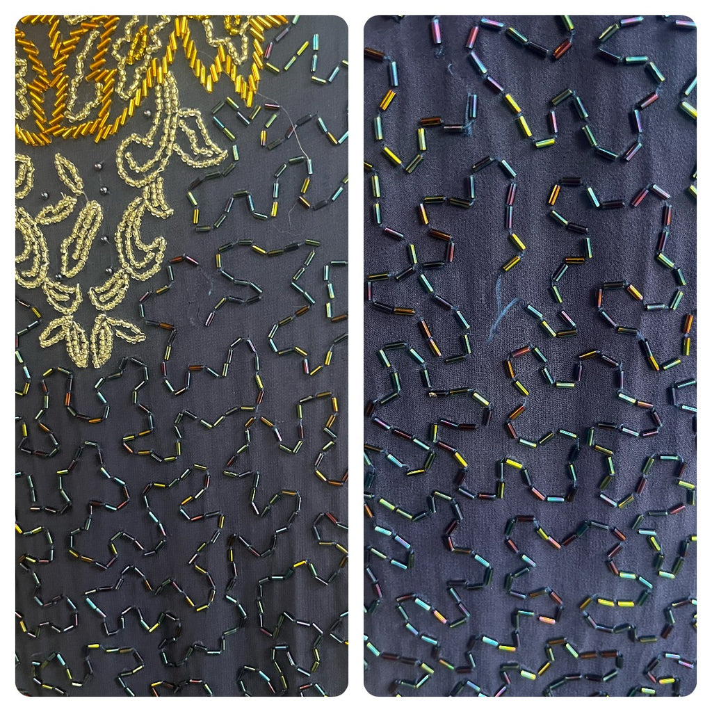 Vintage 80s 90s ' Blue and Gold Fully Beaded Sequin SilkHalter Formal Dress ' 12