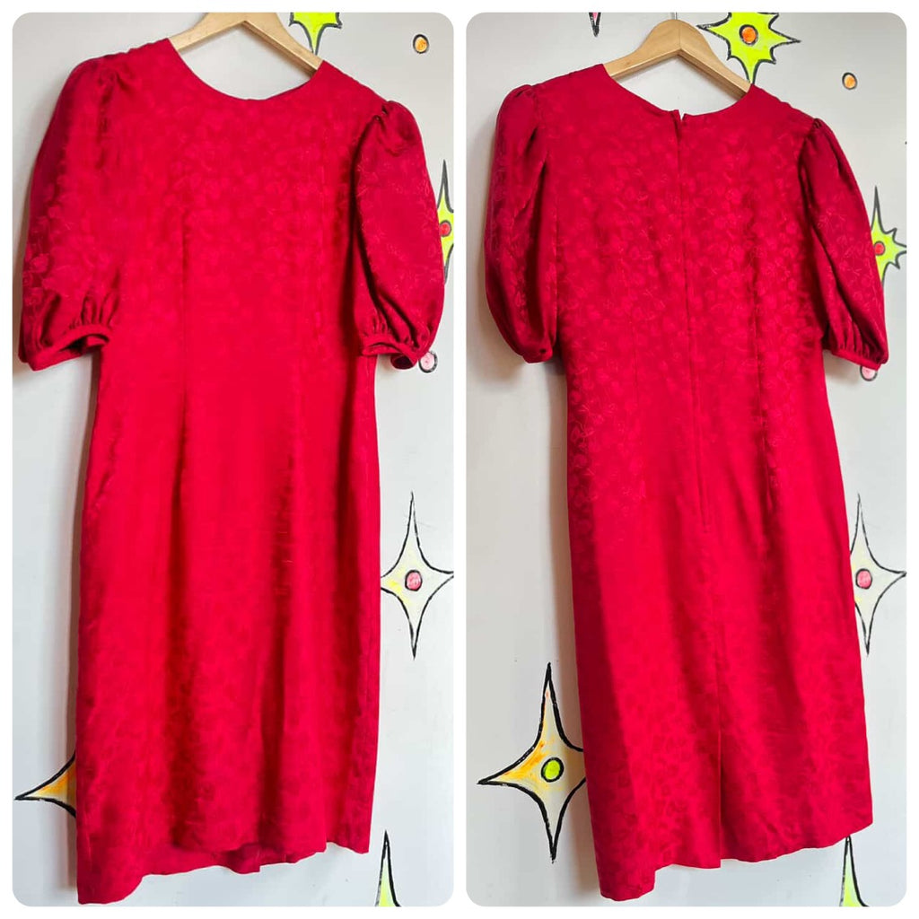 #VintageSilkDress #80sGlam #BohoGrunge #RedDressVibes #PuffSleevesForever
