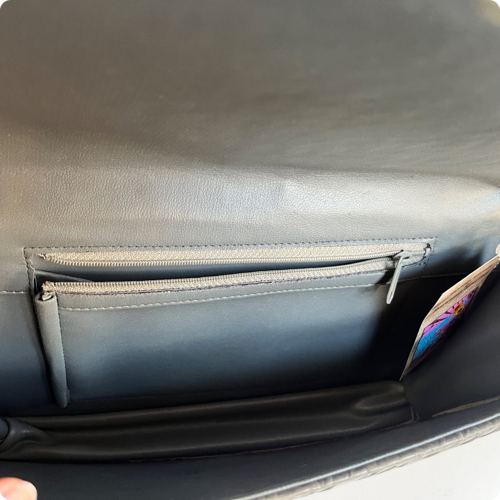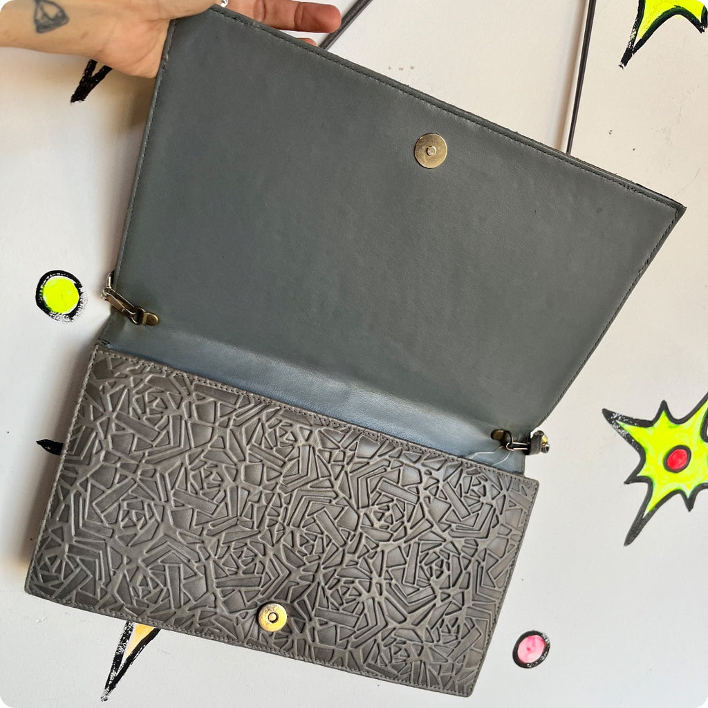 Gray Embossed Leather w Snake-print details - Envelope Clutch - Cross Body Purse