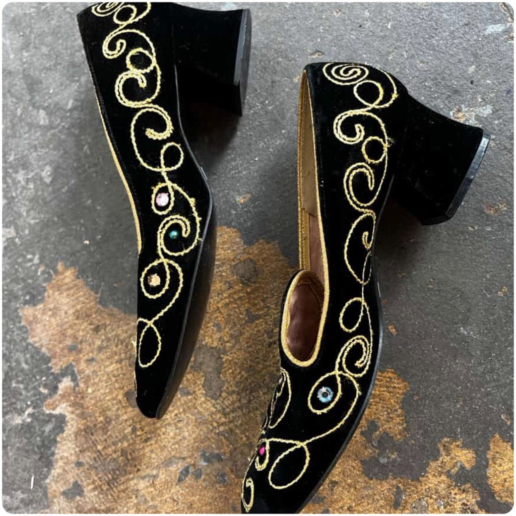 #VintageGlamShoes #JeweledPumps #80sPartyStyle #StatementLoafers #VelvetVibes