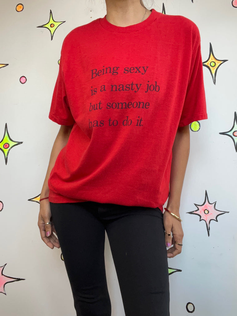 Vintage 90s Being Sexy Is a Nasty Job Someone Has To Do It Graphic Tee T-Shirt M