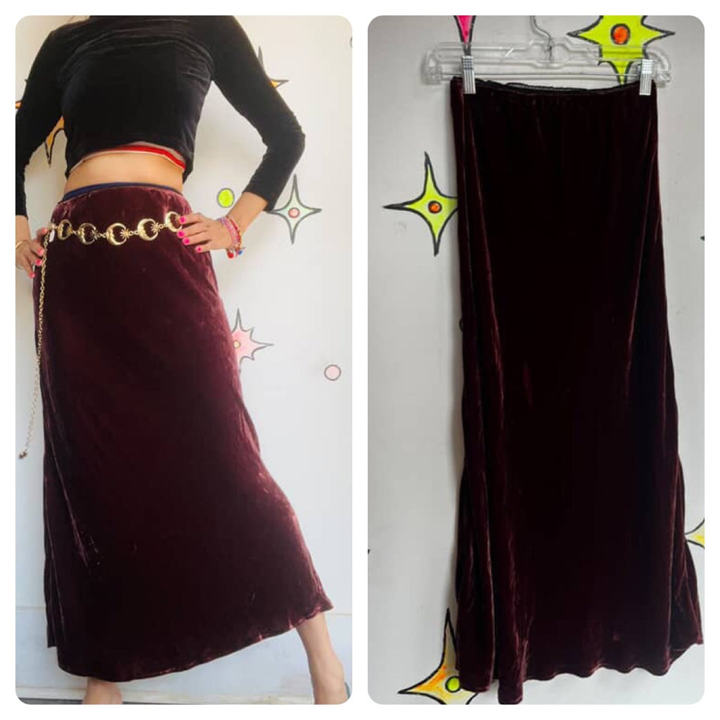 Vintage 90s ' Burgundy Velvet Fairy Grunge Whimsy Goth Flowy Maxi Skirt ' Small