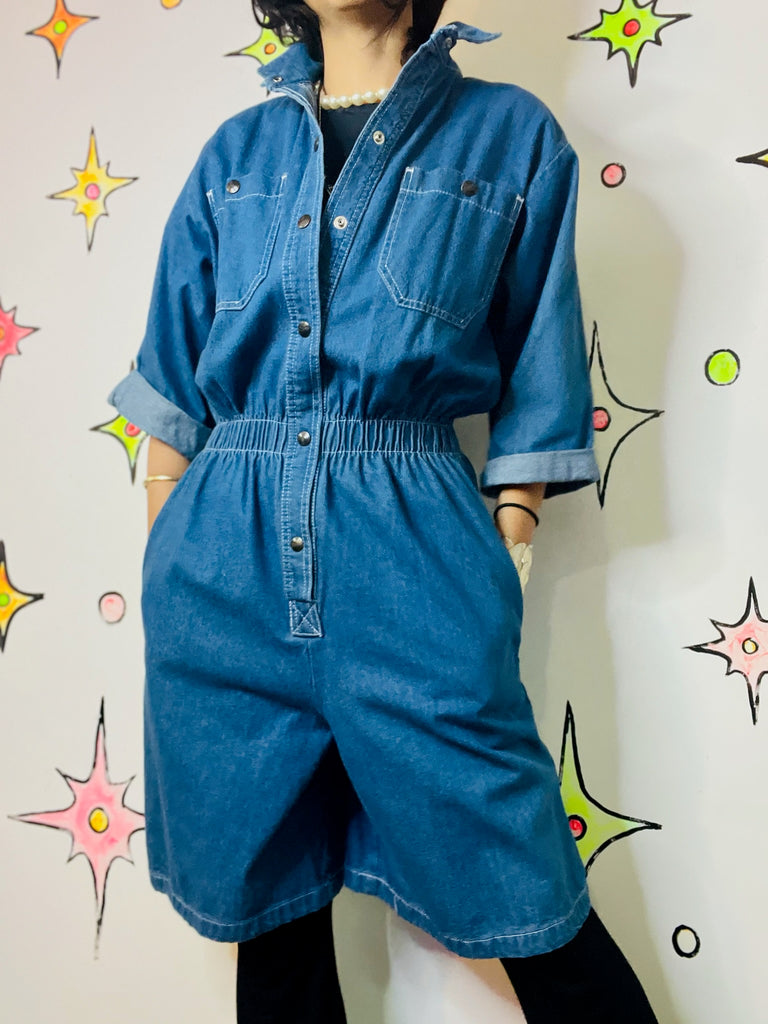 Vintage 90s Denim Overall Dress Grunge Streetstyle Mini Jumper Emo Y2K – Large