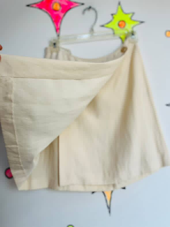 Vintage 90s DKNY Cream Silk Linen Suit ' Double Breasted Blazer & Mini Wrap Skirt ' Size 4