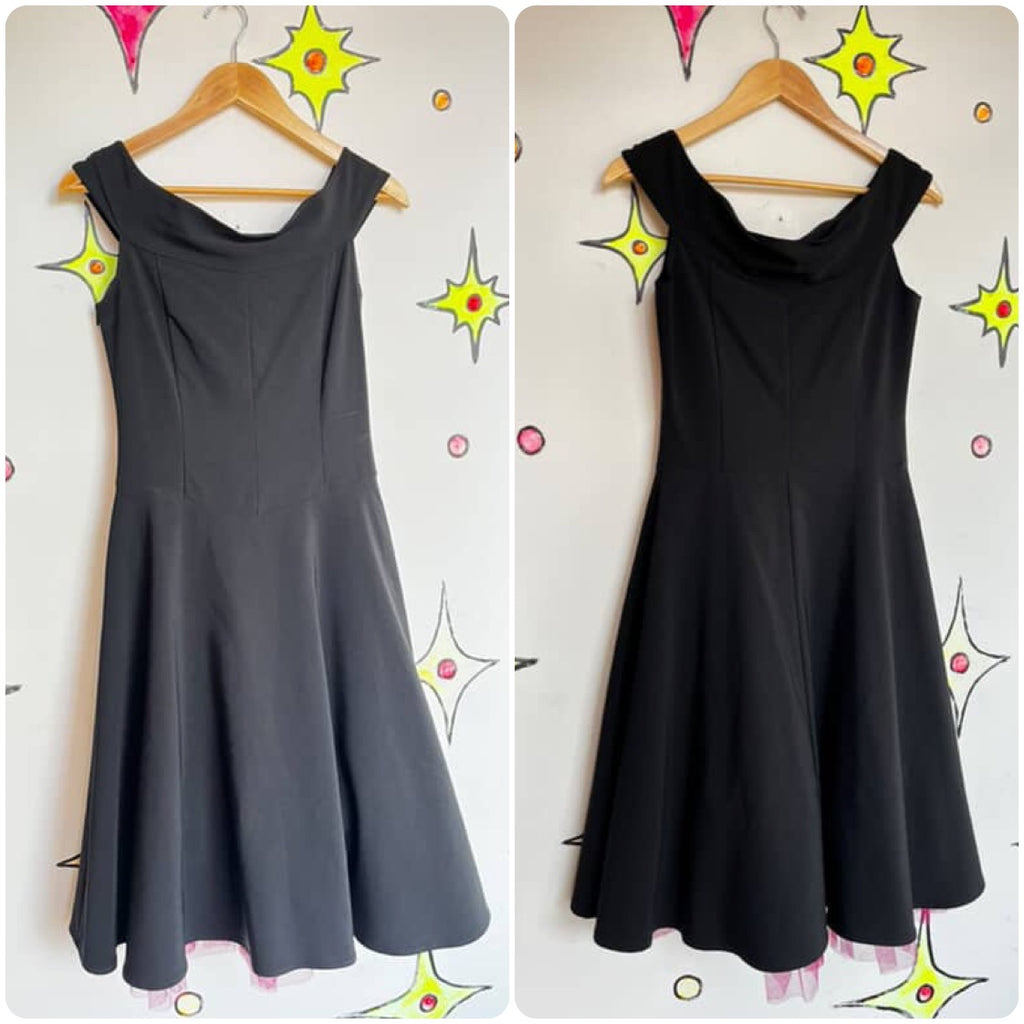 Vintage 90s does 50s Retro Cha Cha Dress Full Skirt Fit & Flare Swing Dress Sz 7