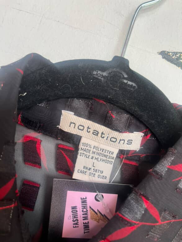 Step into 90s whimsy with this sheer black and red long sleeve blouse by Notations. Perfect for layering, styling goth-inspired looks, or adding a bold vintage piece to your wardrobe. Features a lightweight polyester fabric that drapes beautifully.