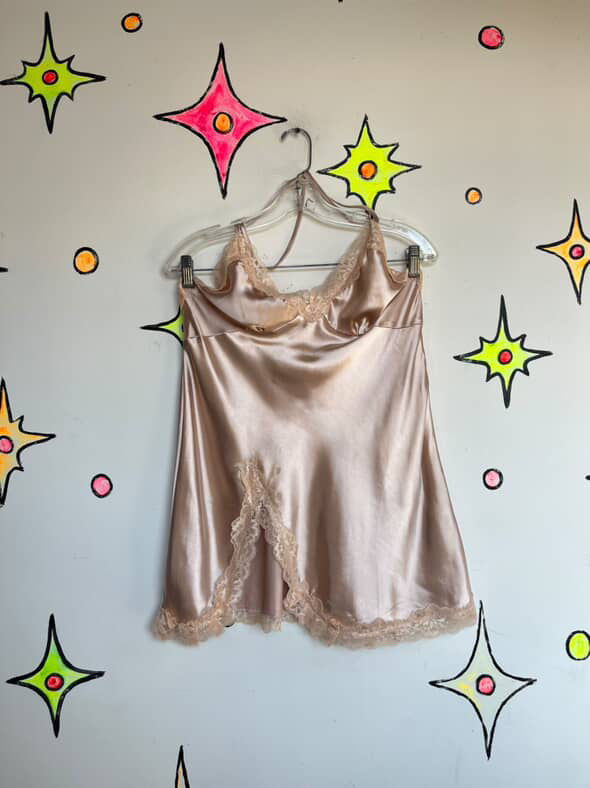 Vintage 90s Y2K Blush Pink Satin Lace Fairy Grunge Princess Mini Slip Dress M