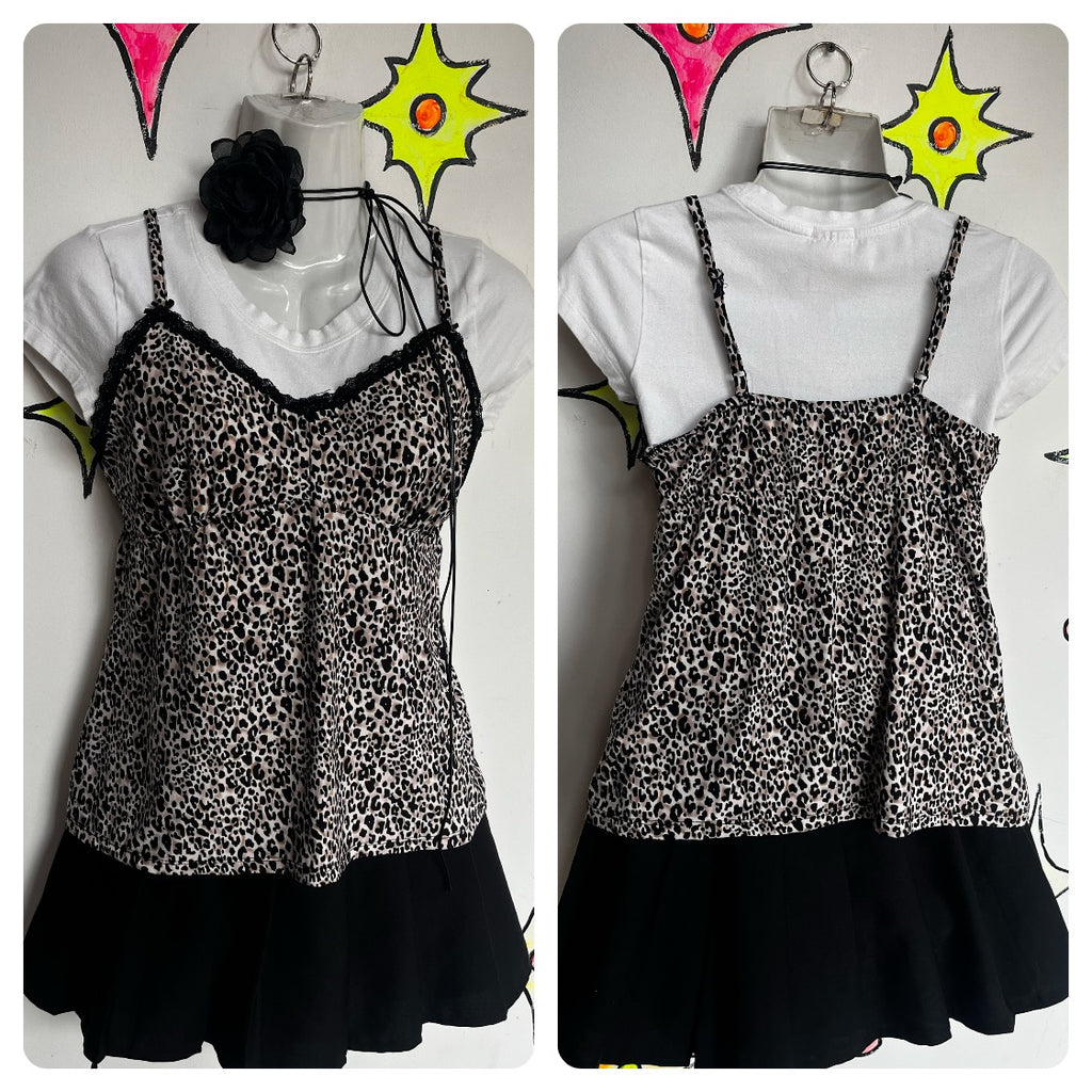 Vintage 90s Y2K | Leopard Print Lace Goth Coquette Fairy Grunge Camisole Top | M