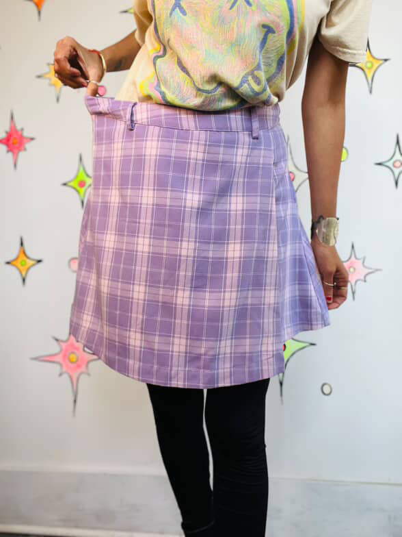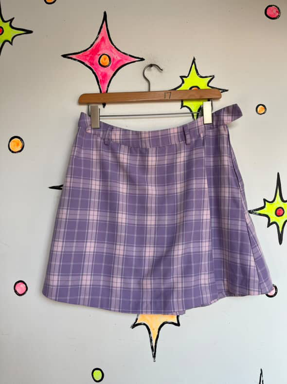 This vintage 90s/Y2K pastel plaid tartan mini skirt by Hot Topic brings iconic grunge-emo schoolgirl vibes. Featuring soft lilac tones, it's perfect for pairing with band tees, corset tops, or oversized knits. In good vintage condition with no stains or tears-note: pleats are slightly undone (see photos), reflected in price.