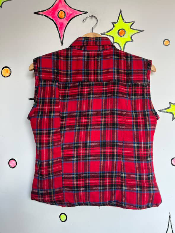 Vintage 90s Y2K Red Plaid Zip Up Flannel Utility Vest ' Grunge Layering Top S