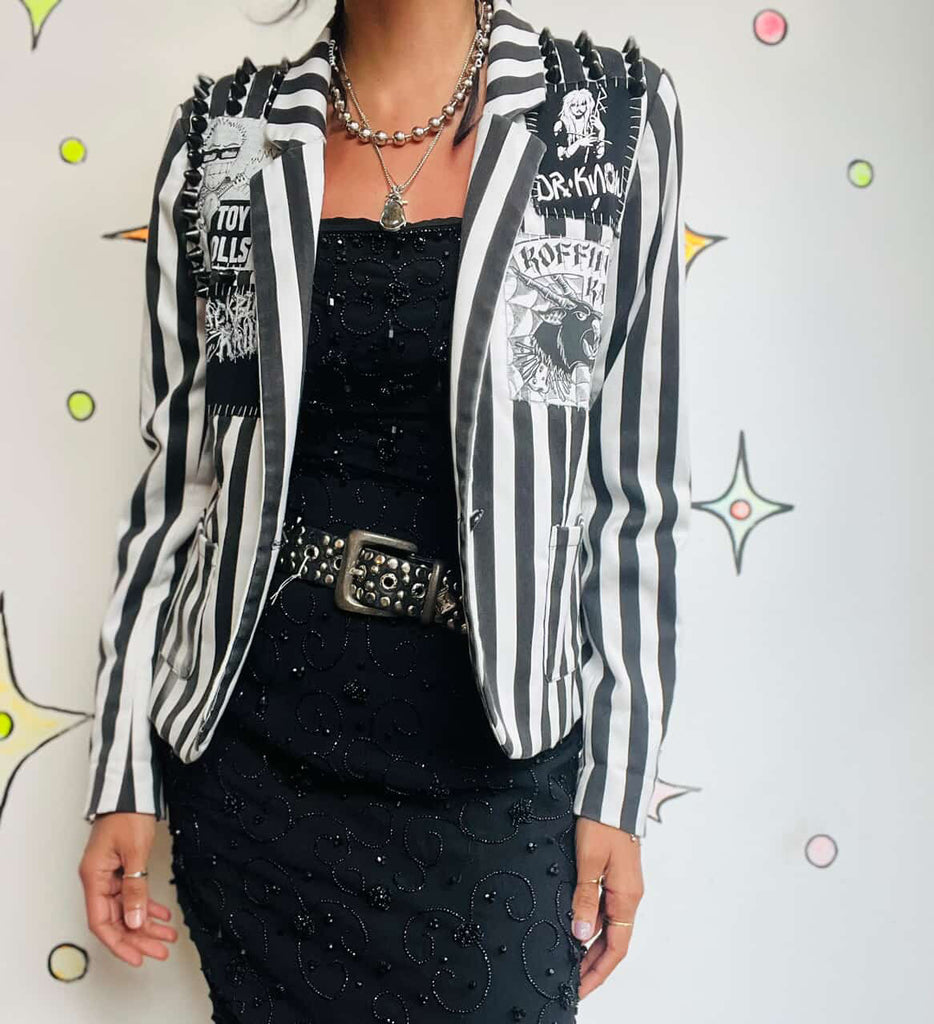 #DIYPunk #VintageBlazer #PunkFashion #GrungeStyle #AnarchistStyle #StreetwearVintage #BlackAndWhiteBlazer #ArtSchoolFashion #VintageJacket #AltStyle #PunkRevival #Y2KGrunge #DIYVintage