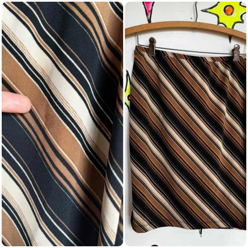 Vintage EXPRESS Slinky Mocha & Black Diagonal Stripe A-Line Skirt ' 90s Y2K ' S