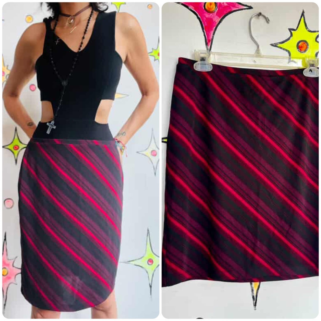 Vintage EXPRESS Slinky Red & Black Diagonal Stripe A-Line Skirt ' 90s Y2K ' M