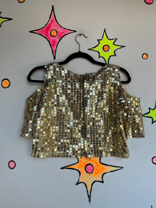 #VintageDisco #GoldSequinTop #BohoGlam #Studio54Style #FairyGrunge #DiscoQueen #RetroCropTop #SparkleSeason #VintagePartyTop
