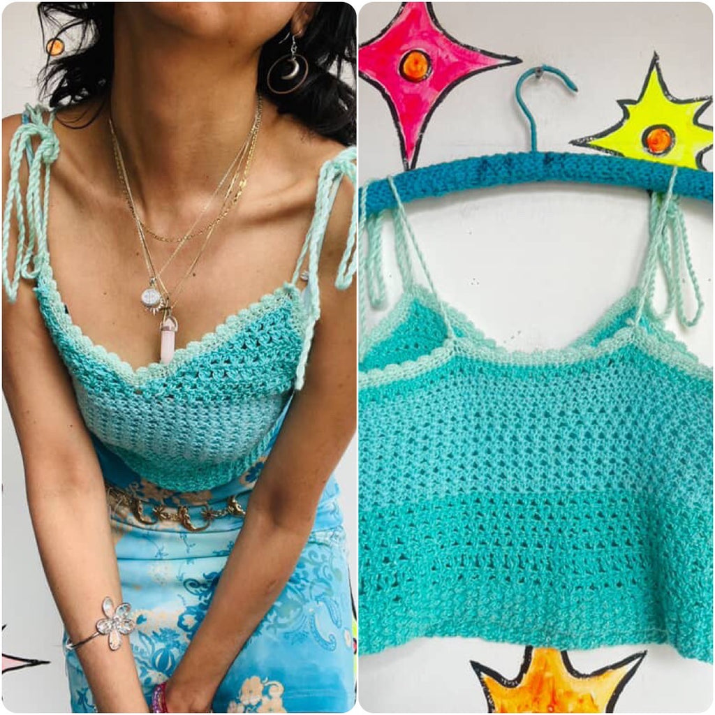 Vintage Handmade | Pastel Blue Crochet Coquette Fairy Babydoll Cami Crop Top | S